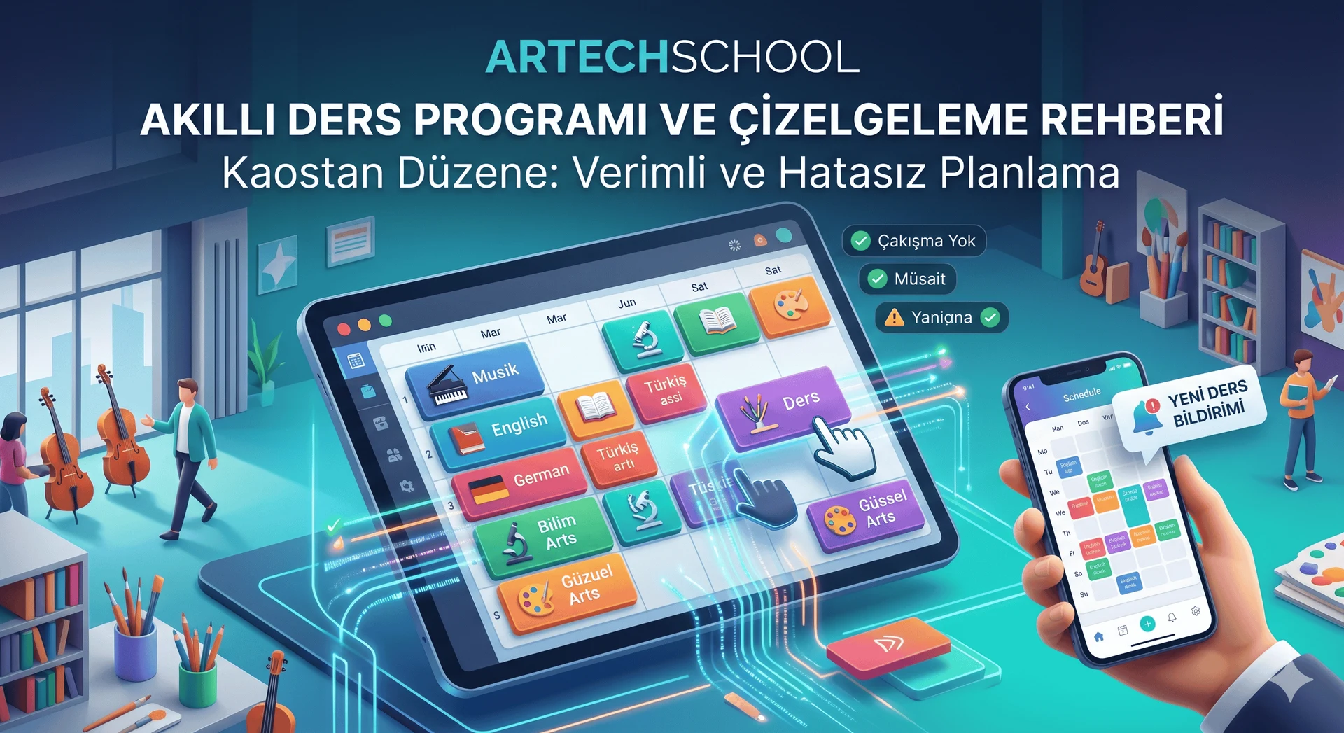 Harekete Geçirici Mesaj (CTA): Karmaşık ders programlarından ve çakışma krizlerinden yoruldunuz mu? ArtechSchool'un akıllı takvim modülüyle tanışın, vaktinizi evraklara değil eğitiminize ayırın. [Ücretsiz Demo Talebi Oluşturun] veya sorularınız için [WhatsApp Hattımızdan] bize ulaşın.
